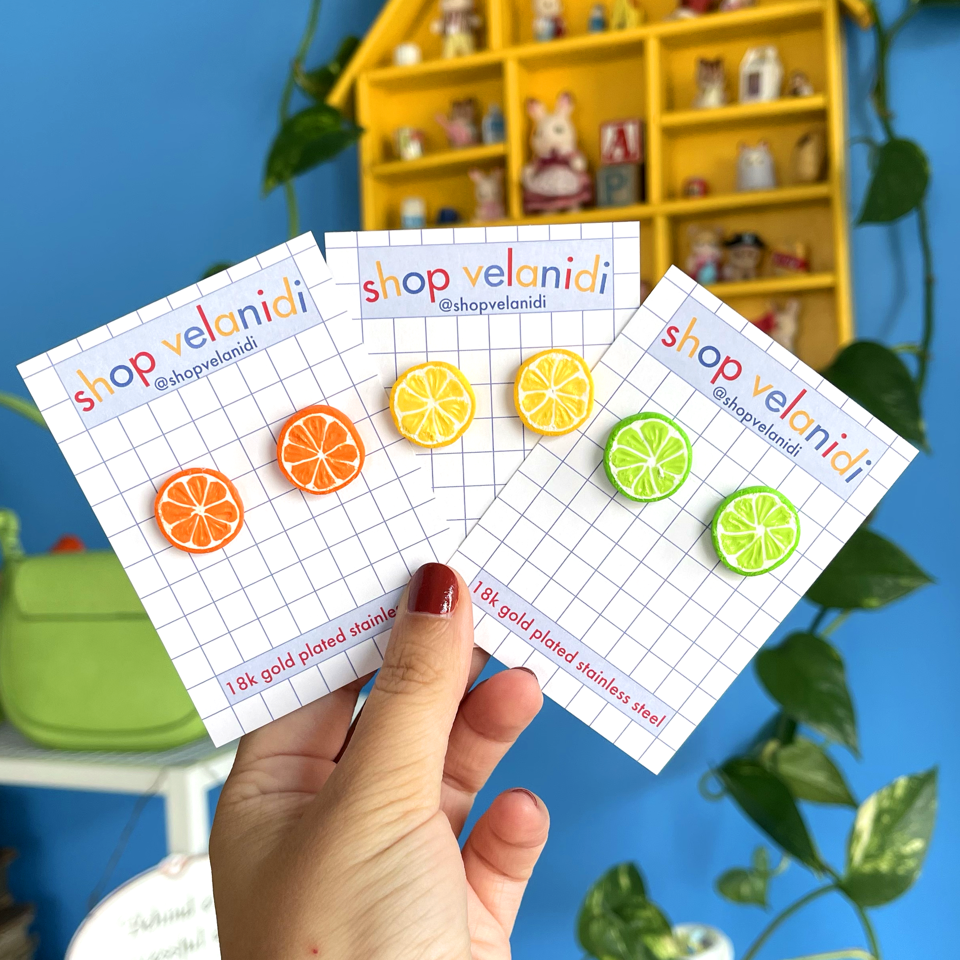 CITRUS SLICE STUD EARRINGS (SOLD AS SINGLES FOR MISMATCHING)